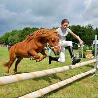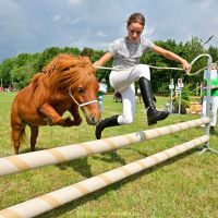 - Shetlander springen aan de hand ( tevens een prijs voor leukste verkleede deelnemer met pony)
